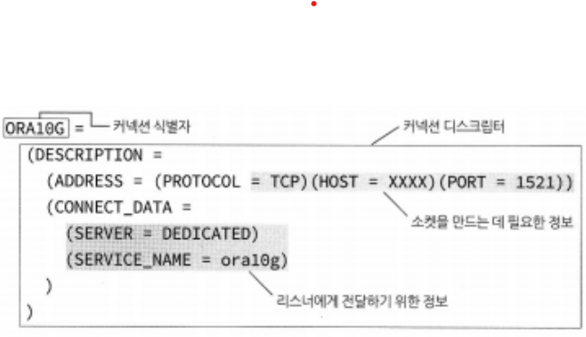 애플리케이션 내부에서 커넥션 명령이 수행되거나, SQL PLUS에서 connect 명령어가 수행되는 순간에 커넥션을 수행한다. (CONNECT scoot/tiger@ora10g ----> 커넥션 식별자