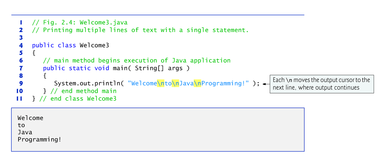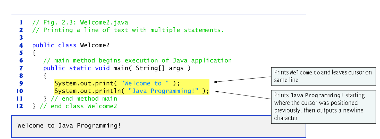 Welcome2는 두 개의 명령문을 사용하여 아래 그림에 표시된 것과 동일한 출력을 생성합니다.