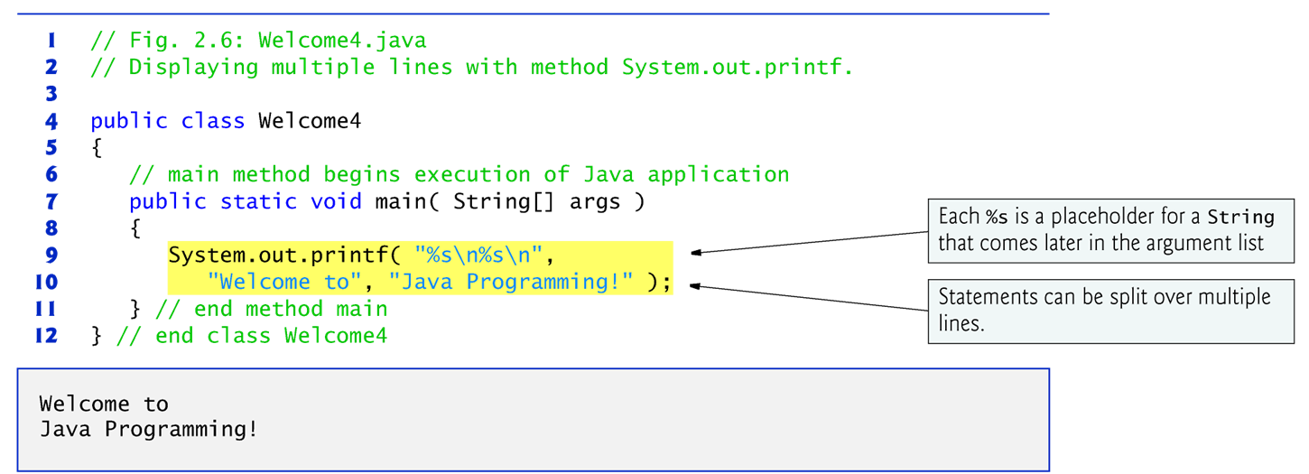- Java에서는 큰 명령문을 여러 줄로 분할할 수 있습니다.